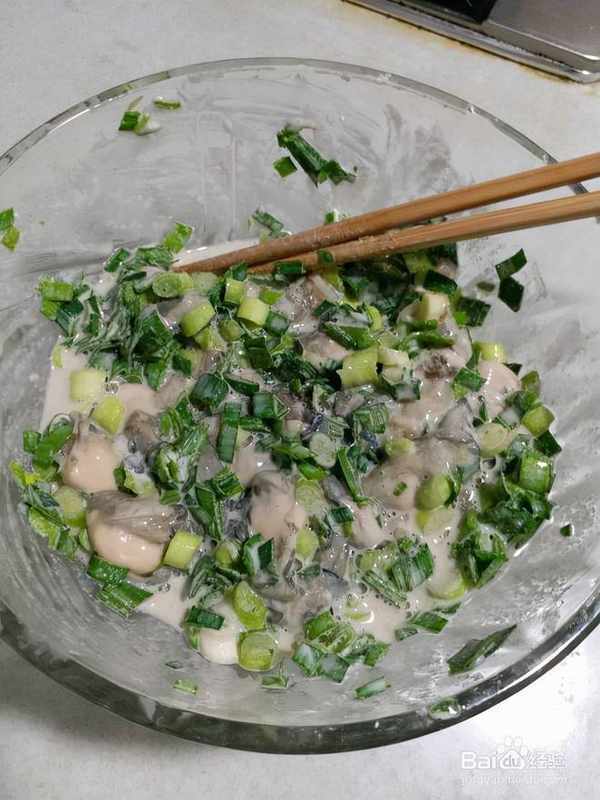 5用紅薯或紅薯做的牡蠣被炸成Q。一碗6湯匙面粉的牡蠣是我最喜歡的硬度。加多少土豆粉要看個人喜好。土豆粉越多,越緊實。有些人甚至會感到難受。所以,一開始,我寧願少放點粉。如果不凝固,就把蛋液放進去。