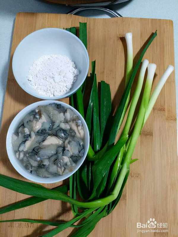 6把牡蠣,切碎的大蒜,土豆粉,鹽和胡椒放在一個大碗裡。