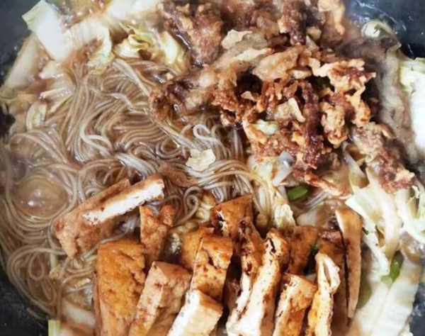 燉燴菜,大姨說,這道菜擱在以前,隻有過年的時候才能吃到,現在條件好瞭,好吃的菜也多瞭,可她還是喜歡吃這個菜,用大白菜粉條炸肉炸豆腐放在鍋裡燉熟就行瞭。大姨是把自己覺得好吃的東西,拿給客人吃!