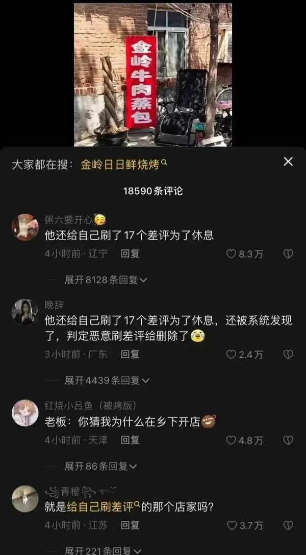 這個大爺為瞭能夠讓自己輕松一點,甚至求顧客給自己刷差評,以此減少自己店鋪的客流量。而老板甚至自己給自己刷瞭17個差評,最後被平臺發現給刪除瞭。這一搞笑行為被網友曝光之後,大爺的燒烤店更火爆瞭!許多遊客是一邊吃一邊刷差評,下次還去吃,畢竟大爺做得烤肉串量大味美,是真的好吃到不行。