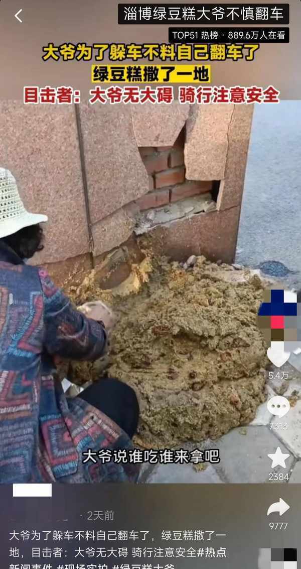 而每天被遊客小姐姐追著跑,又厚實又好吃的純手工制作綠豆糕大爺,則在前兩天不小心翻車瞭。是他騎的三輪車不小心翻瞭,據說大爺身體沒有什麼大礙,原本綠豆糕大爺賣綠豆糕就是為瞭能夠出來躲避老伴的嘮叨。然後邊騎邊慢悠悠逛街,一天隻賣一鍋,賣完這一鍋綠豆糕正好可以回傢,結果被網友發現隱藏副本後,生意好的不行,整天被遊客小姐姐追著跑!希望大爺身體早日康復,盡快再出來賣綠豆糕吧!