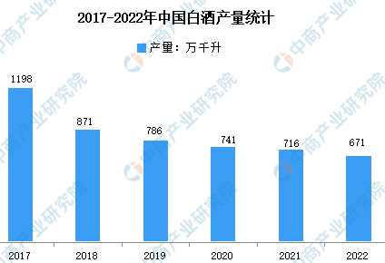 2022年,我國的白酒總產量約為671萬千升,從數據上看確實很多,但其實這已是連續十年下滑瞭,早在2017年的時候就已將近1200萬千升,如今已下降到快一半的產量。這其中連續的下滑有很多因素,其中年輕消費群體的流失是一方面,這個群體更喜歡啤酒等飲品,同時相關政策的限制也讓白酒產量大幅下降。