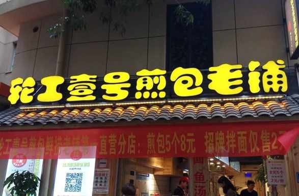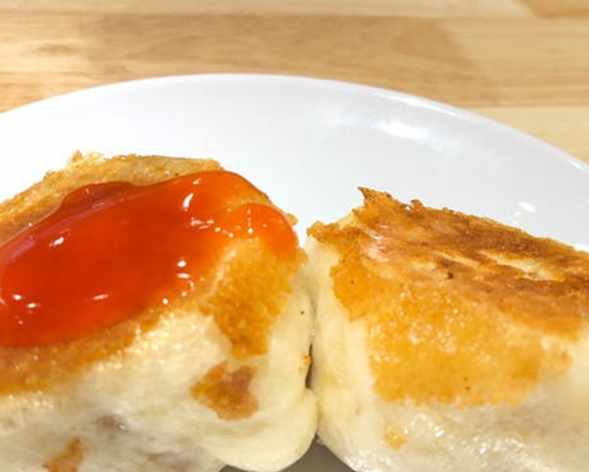 煎包的檔口是明檔,可以看到製作的過程,煎包的鐵鍋是特製的,一口鍋可以一次性煎上個上百個煎包。煎包的功夫就在於對火候的掌控,而店裡的老師傅就是這方面的行家,師傅熟練的翻滾圓鼓鼓、白胖胖的煎包,伴隨著師傅不斷的翻動,香氣就"冒"出來了。聞上一口,就讓人口水直流,往往是煎包剛煎好一鍋,整鍋就被顧客搶空了!