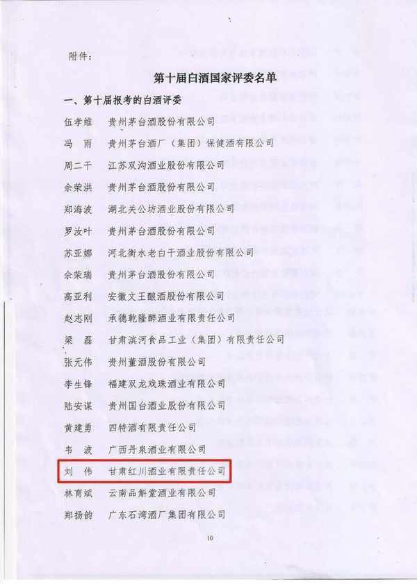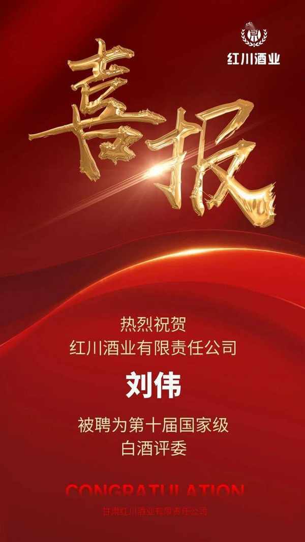 2023年4月25日,中國食品工業協會下發瞭《關於聘任第十屆白酒評委的通知》,通知公佈瞭第十屆國傢級白酒評委聘任名單。紅川酒業參評人員劉偉被聘為第十屆國傢級白酒評委。