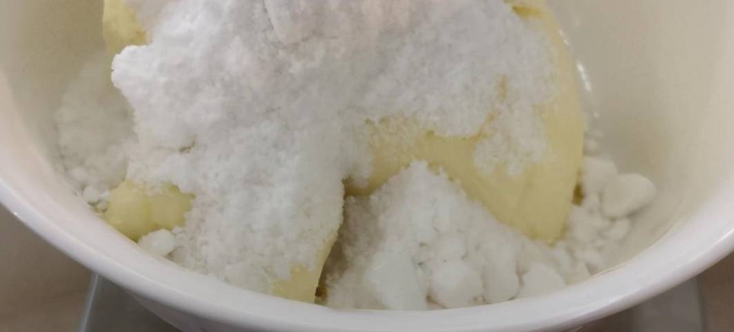 3.卡仕達醬2個蛋黃,加入20g糖粉
