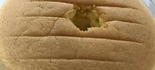 19.戚風蛋糕中間挖個孔,挖大一點。
