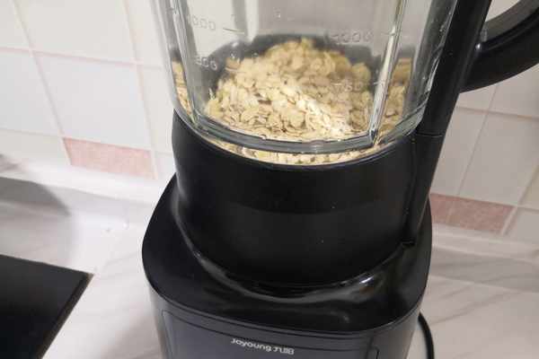 早起控去水,食材倒入九陽免濾破壁機裏,再放入麥片