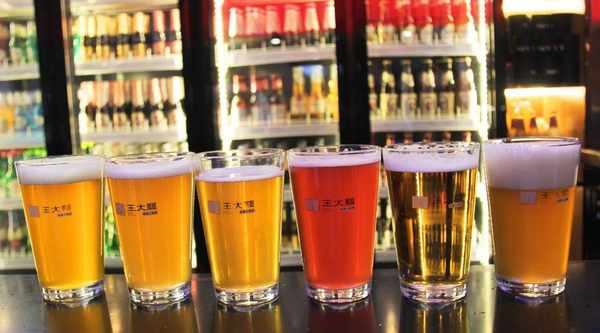 門口的吧臺上更是擺瞭整整齊齊六種風味的鮮釀啤酒,不管是草莓還是百香果,或者是龍井口味的啤酒都讓人愛不釋手,一杯比一杯勾魂。