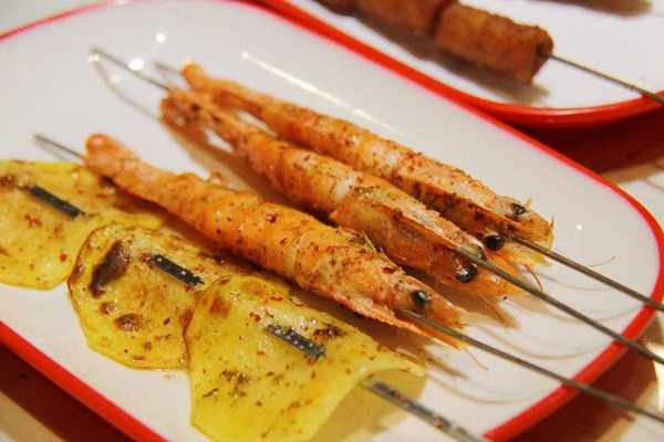 聊城燒烤種類多,特色也多,肉串、肉筋、心管、板筋、蒜瓣肉、烤大蝦、烤馬步魚,總之隻要你想要的,就沒有後廚裡找不到的。