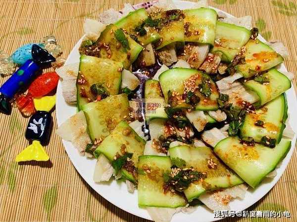 1:黃瓜是夏天不可缺少的蔬菜之一,立夏時節也是黃瓜大量上市的季節,黃瓜含有豐富的維生素、礦物質、蛋白質等物質,吃起來鮮嫩多汁,補水利尿,而且價格也便宜,生吃、涼拌、爆炒、做湯、吃餡。做法簡單還下飯。下面,推薦一道好看又好吃的涼菜:黃瓜蒜泥白肉。這道菜讓喜歡吃肉的朋友在夏天吃起來既過癮又不感到油膩。