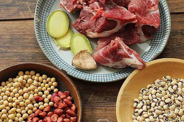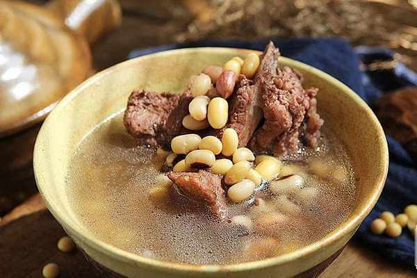 【食材】:花生30克、黃豆30克、眉豆30克、豬扇骨適量、陳皮1小塊、薑3片、鹽 適量