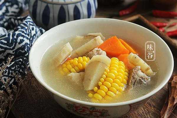 【食材】:排骨 400克、粉葛 500克、甜玉米 1根、胡蘿卜 1根、料酒 2勺、薑 3片、鹽5克