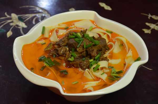 面食的做法千千萬,花樣繁多,給我們的生活增添瞭很多美好的東西。下面給大傢分享地道的新野板面做法,操作簡單又好吃。新野板面的做法有三大關鍵:板面要做好,臊子要質高,配菜要精細。其中板面的制作非常有趣。將面和好後,用力揉盤,搓成長條,揪成50克大小的劑,搓成小條,抹上油,一層層排在案上,撒上面撲,用手按扁,搟平,左右手各捏一端,拉長後再折合回來,一手捏住,一手用小搟杖插入另一端,在案板上伸展摔打,拉成寬窄均勻、筋柔透明的面片。臊子的制作也至關重要: