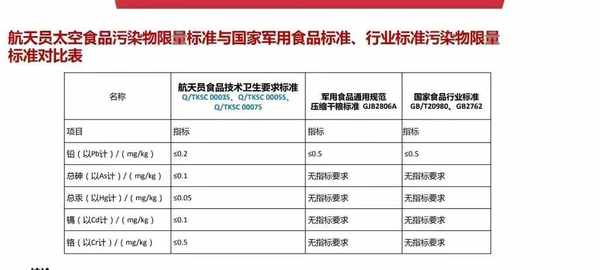同時,太空食品的原材料配比以及能量配比,營養搭配上執行的是高標準,即高於國傢食品行業標準,高於軍用食品標準,在引領我國軍用食品轉民用食品的發展方向上起著導向作用。