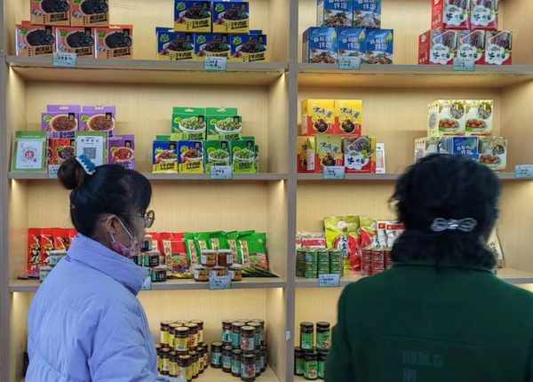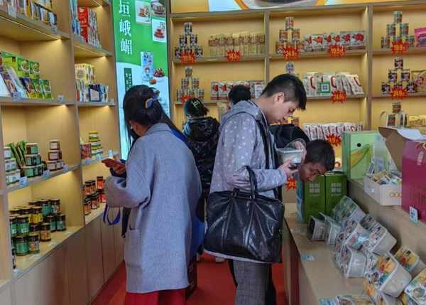 運城特產館內“永濟好物”展臺前遊客如織:方便即食的牛肉醬、秒變大廚的扯面料、營養健康的玉米糊、開胃爽口的蘋果醋、永濟特色速食扯面琳瑯滿目,現場收獲參展單位和遊客好評。