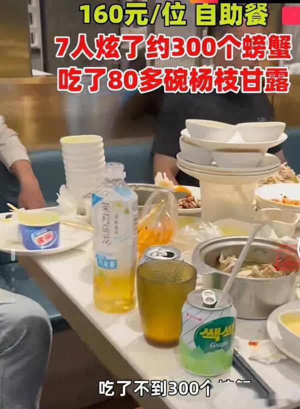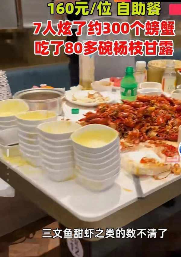 7人給自助餐老板上瞭一課:約300隻螃蟹80多碗楊枝甘露40多盒榴蓮