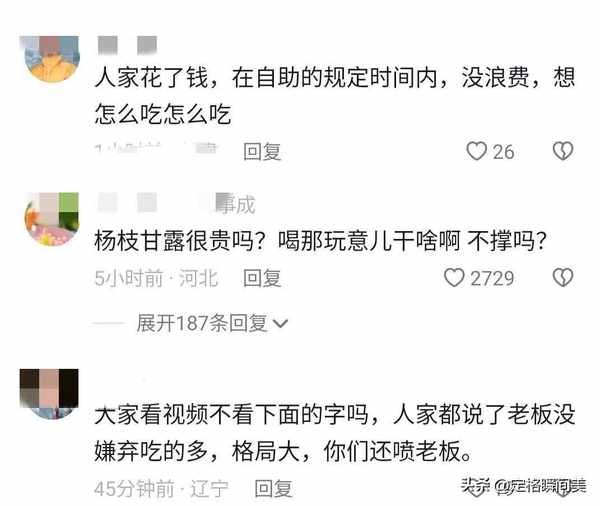 還有的網友說:人傢說瞭老板沒嫌棄吃得多,格局大!就不要噴老板瞭。