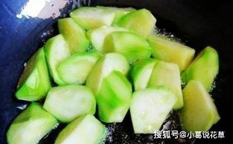 制作過程:第一步是絲瓜絡。清洗幹凈後,將絲瓜剝去外皮,將絲瓜卷起來,切成塊。絲瓜處理好後,在炒鍋中加入少許食用油,燒熱;