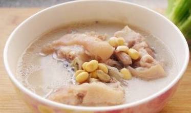 材料:豬腳1500克,黃芪10克,黃豆100克,蔥薑適量