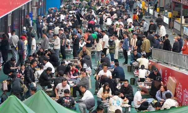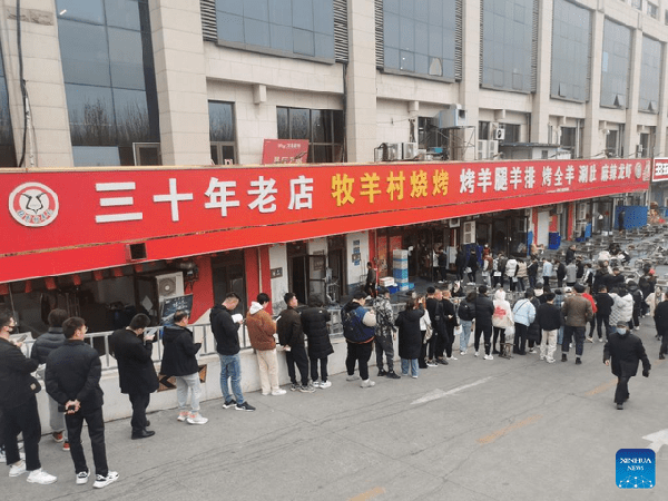 中國民眾品嘗淄博燒烤的畫面