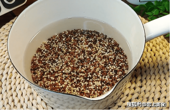 準備60克的三色藜麥,清洗幹凈之後浸泡20分鐘。