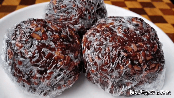 時間到瞭,五谷飯煮好瞭。稍微放涼後,用手團成團,再用保鮮膜包起來。