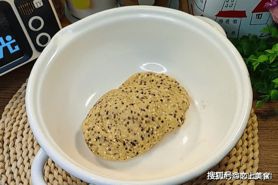 泡好以後,再用流動的清水沖洗幹凈,瀝幹水分後倒入盆中,加入120克的全麥面粉和兩克酵母粉,攪拌均勻,分三次倒入60毫升的溫水和面,攪成大絮狀之後下手揉面,揉成一個軟硬適中的面團。蓋上保鮮膜,常溫發酵2個小時。