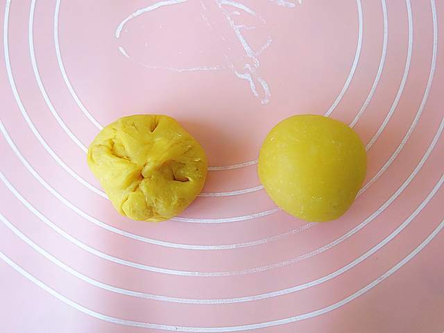 6、最後卷好的面卷對角線捏一捏,整理成圓劑子。這樣操作後的小餅松軟但瓷實,烤好瞭入口綿香的。