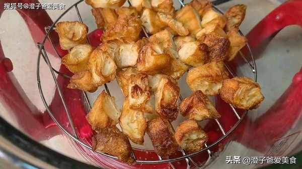 3.準備一個空氣炸鍋,把油條放裡面,也可以直接過油,用空氣炸鍋去烤,不吸油更健康,把油條烤至酥脆,裝到盤子裡面備用。