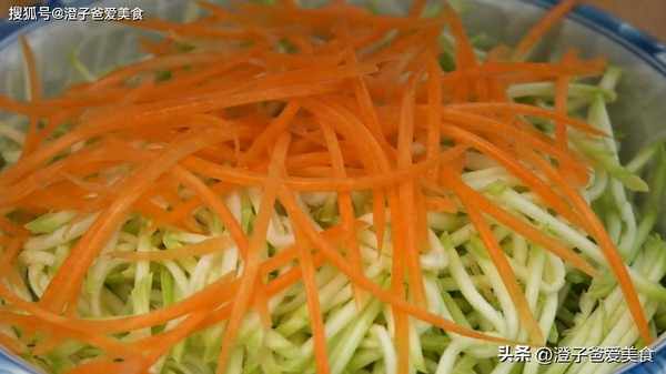 1.準備西葫蘆一根,清洗幹凈,用刮板擦成細絲,胡蘿卜半根也刮成絲。