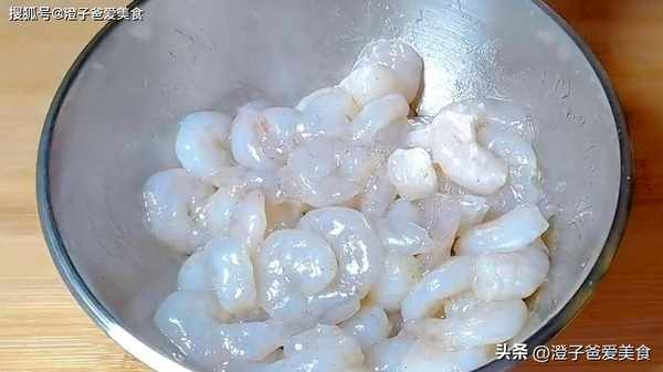 2.在準備一些清蝦仁,把水分完全吸幹,放入碗中醃制一下,加入一點鹽、白胡椒粉去腥,用手抓勻後,放入一勺的食用油攪拌一下,放冰箱冷藏醃制20分鐘,再切點薑末備用。