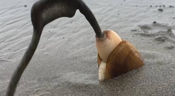 可是,他剛準備把蟶子拿起來玩,看看這個大蟶子,可是人傢蟶子機警的很,他剛想蹲下來行罷,就被蟶子發現有點不對勁,突然伸出頭在地上,快速鉆瞭一個洞,很快就把大半個身子給探瞭進去,別看蟶子這東西還挺麻利,很快就把洞給挖出來瞭。