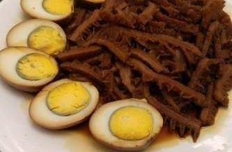 7鹵水牛肚絲做法:隻需撈起牛肚絲和雞蛋一開二就可上碟。