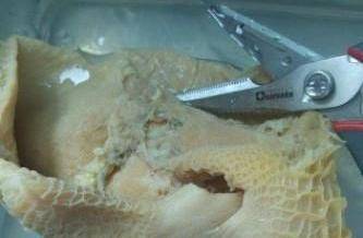 3準備一盤冰水把牛肚放入浸凍。