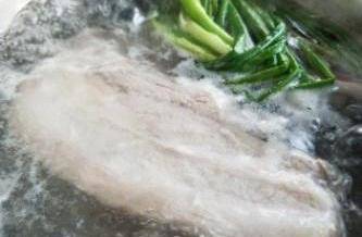 2預備一鍋熱水加入汆水料同煮5分鐘,再把牛肚汆水15分鐘。
