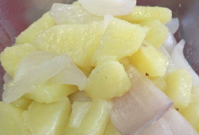 洋蔥燴土豆:洋蔥洗凈切成片,土豆洗凈去皮切成厚片;先將土豆片放入鍋內加入少許水煮熟;待土豆煮熟後加入適量的食用油;加入洋蔥開始收汁。收完汁即可開始享用自己制作的美食啦。