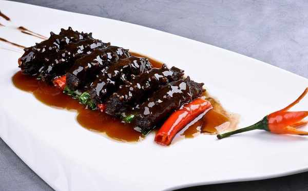 杭椒炒遼參,選用幹制海參,則需事先泡發,清洗幹凈,將海參切成條。杭椒切條,大蒜去皮輕輕拍一下。熱鍋放油,先投入米辣椒,加蒜、煸出香。再加如海參翻炒,放少許鹽、 醬油、雞精 耗油。炒至海參入味,加少許鹽炒熟出鍋。享受美食的時間是快樂的,吃美食時我狼吞虎咽!