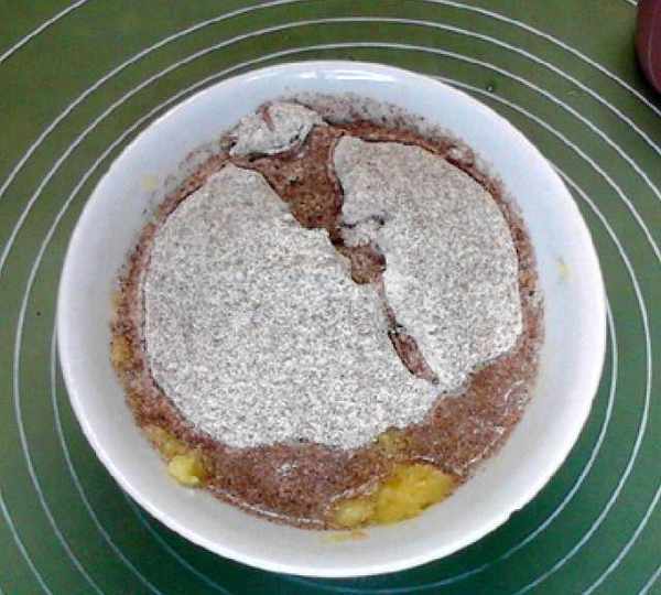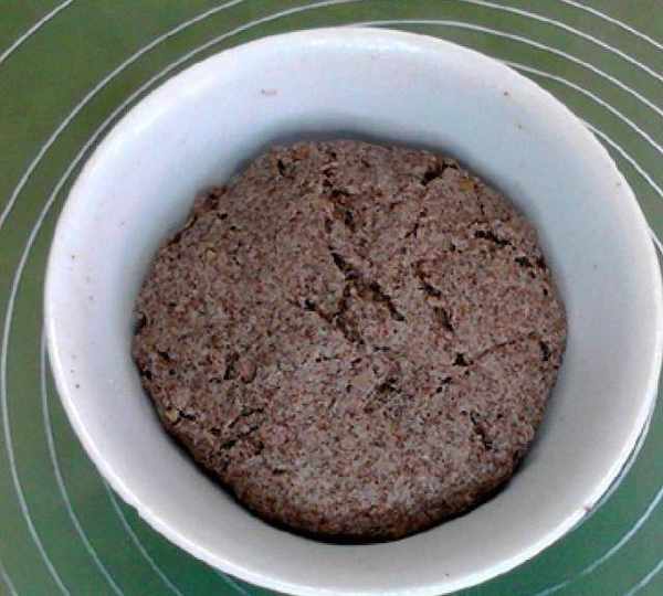 第4步、倒入黑全麥自發粉和水。