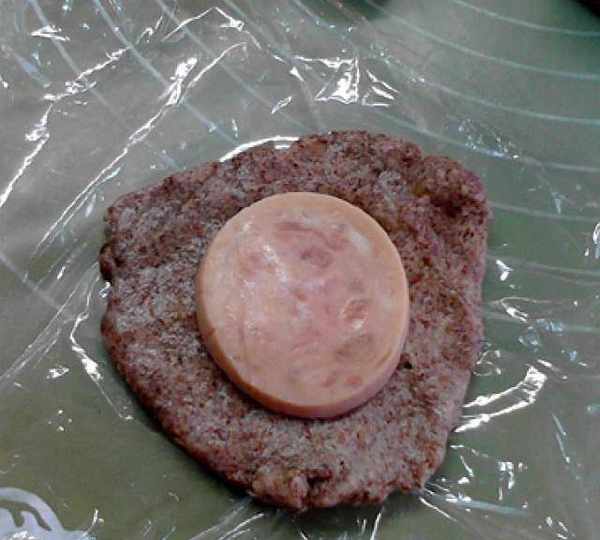 第8步、將火腿切成圓片,備用。