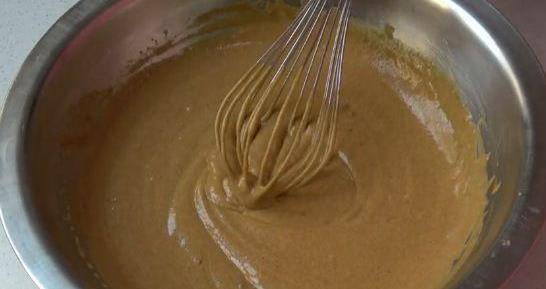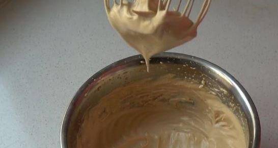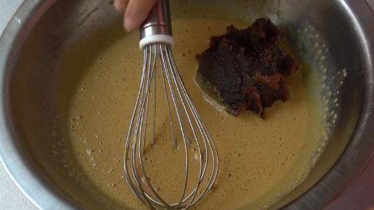 繼續打發,打至比較濃稠,把剩下的紅糖倒入。