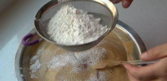 攪勻後,篩入雞蛋糊裡。