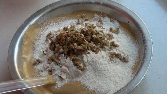 再把核桃仁倒入。