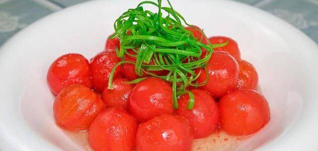 放上少許蔥絲點綴,這道酸甜可口的蜜汁千禧果就做好瞭,酸酸甜甜,一口一個,清甜爽口的汁液在舌尖爆漿的那一刻,簡直妙不可言!真的是顏值與口感並存!