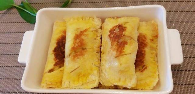 剛出鍋的吐司蘋果派在吃的時候要小心燙嘴,不要急著一口咬下去,最好是用手分成兩半,裡面的蘋果有爆漿的感覺,非常美味,學會這個做法,還可以用香蕉、紫薯、芋頭等做出各種美味可口的派派。