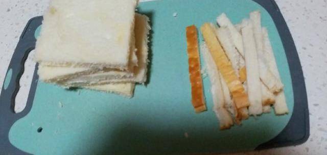 6.把切掉邊的吐司用搟面杖搟平實,兩面都要搟平實才行。