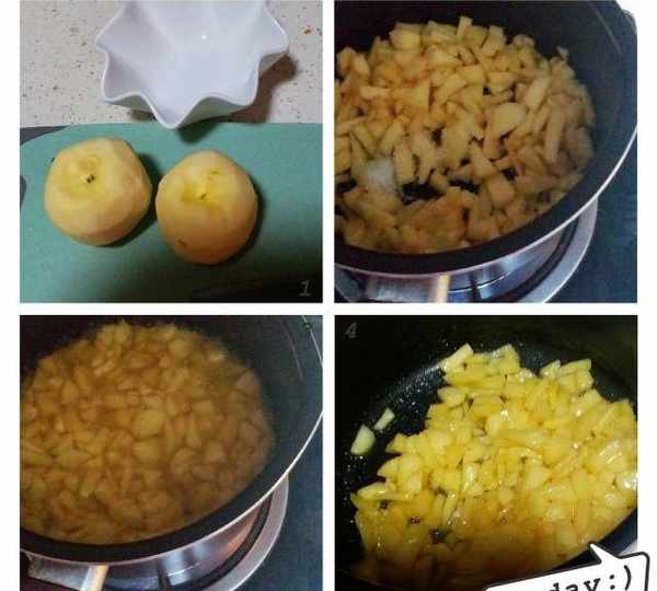 4.加一小碗水煮至蘋果軟爛,收幹水分即可。