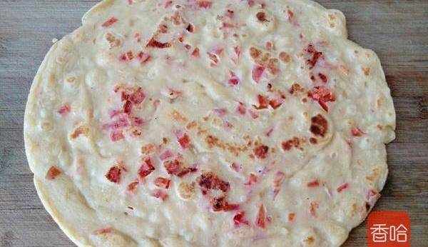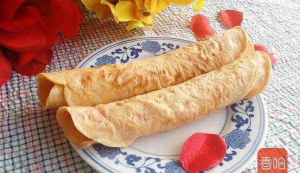 7.這是做好的,卷起來就可以吃瞭,也可以抹點醬,放上火腿腸,生菜。