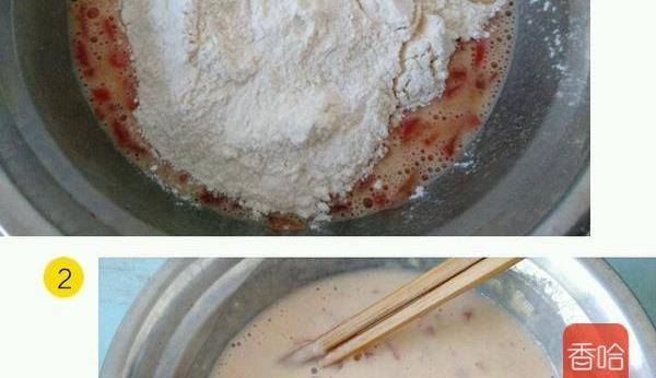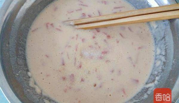 2.把雞蛋打到盆裡,用筷子打散攪勻。