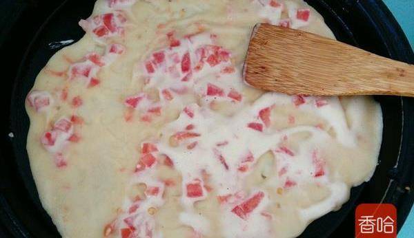 西紅柿半個、雞蛋2個、面粉80克、鹽適量、水適量、食用油適量