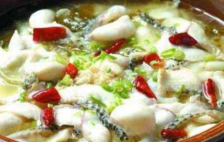 .將魚片和魚骨,魚頭等用清水洗凈,控幹水分,魚骨,魚頭部分放在一個盆內,倒入少許花雕酒,鹽,攪拌均勻,醃漬片刻,放淀粉,裹勻。不粘鍋燒熱,倒植物油,將魚頭和魚骨煎至金黃色。將魚片洗凈,控幹水分,放入碗內,打入雞蛋白2個,放入白胡椒粉適量,放入淀粉裹勻。.酸菜洗凈,切絲,蔥切段,薑切絲備用,野山椒用小碟裝盛,倒入適量的泡椒汁。
